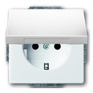 Schuko socket outlet with hinged lid, labelling field, lock mechanism, shuttered