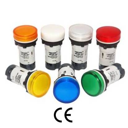 Pilot lights/Illuminated push buttons available with filament bulb, integral LED and LED bulb.