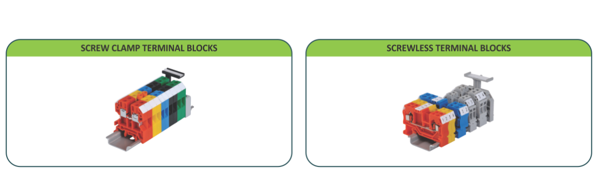 elmex wide range of Terminal Blocks for conductor size ranging from 2.5 to 95 mm² are tested and approved for 1000V DC / 1500V DC and are suitable for use in Solar Photovoltaic Systems. Electrical ratings of these terminal blocks are given below. These terminal blocks have conductor termination by screw-clamp technology or by screwless (spring clamp technology)